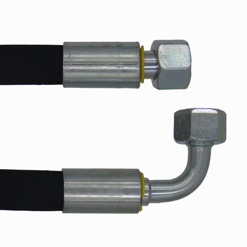 2-lagiger Hydraulikschlauch (EN 857 2 SC) DN10 - 12 L - Längen von 200 mm bis 1.900 mm mit folgenden Anschlussmöglichkeiten: