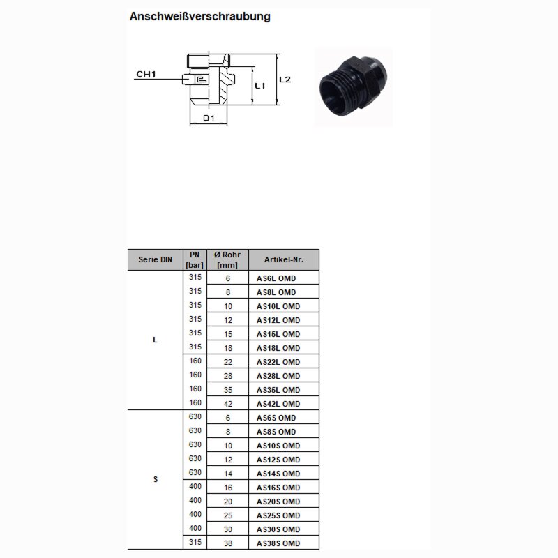 Anschweißverschraubung ohne Schneidring und Überwurfmutter