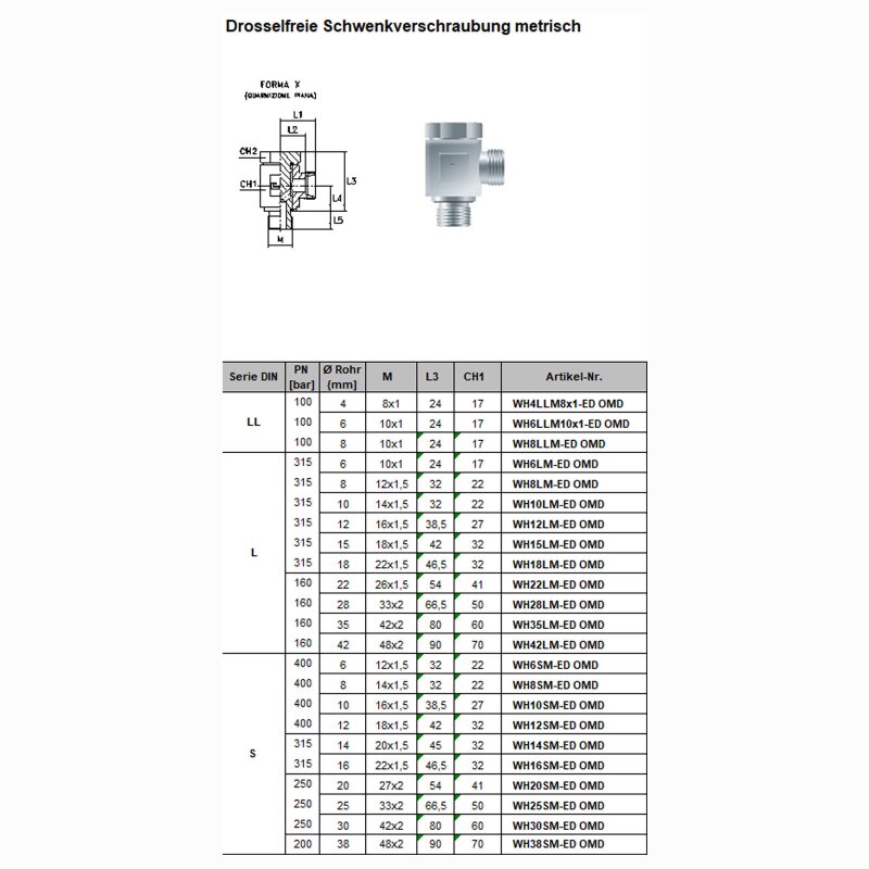 Drosselfreie Schwenkverschraubung metrisch WH10LM-ED OMD
