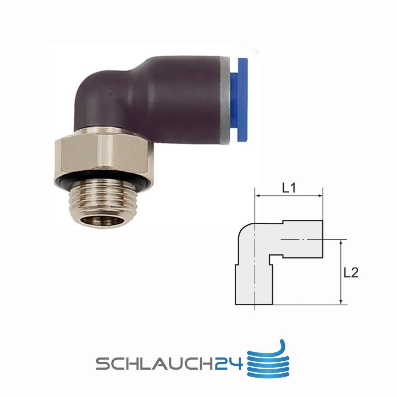 L-Steckverschraubung Winkel 90° drehbar mit Außengewinde zylindrisch mit O-Ring (NBR) G 1/2 12 mm