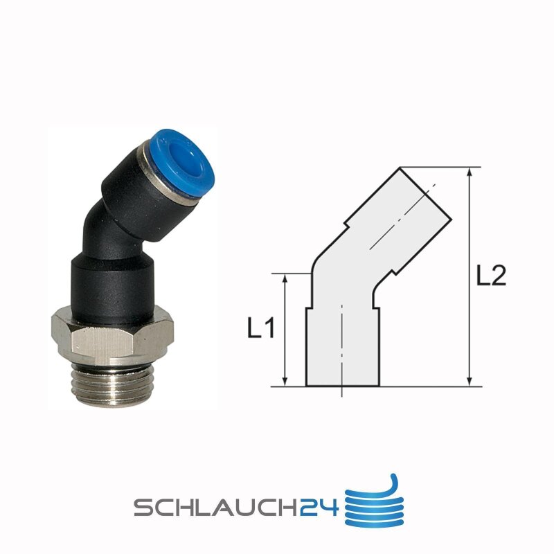 Steckverschraubung Winkel 45° drehbar mit Außengewinde zylindrisch mit O-Ring (NBR) G 1/8 4 mm