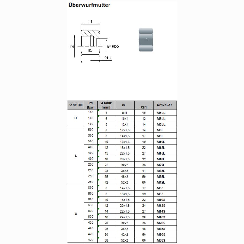Überwurfmutter passend zu unseren Hydraulik Schneidringverschraubungen Typ M