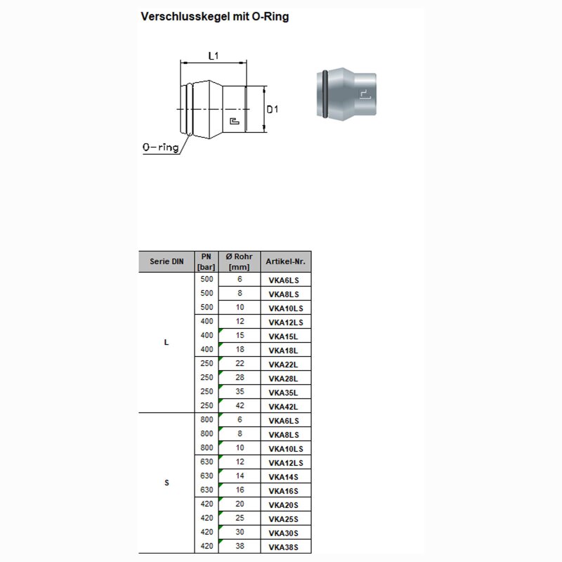 Verschlusskegel mit O-Ring VKA14S